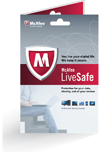 McAfee LiveSafe™ service protects your data and identity on all your devices. Now you can shop, bank, search, and share online securely on any device.