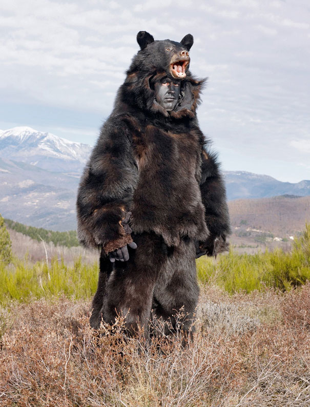 It appears that the tradition of men dressing up as wild animals and monsters, which dates back to neolithic times and shamanism, is still very alive nowadays. The mythological figure of a “wild man” represents the complicated relationship humans have with nature and life and death cycles. His series explores the different interpretations of such figures – while some cultures depict him as covered in flowers or straws, others possess the features of bears, goats, or horned and hairy beasts.